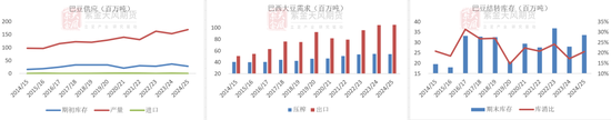 24年巴西累计压榨+出口不足23年,25年刻下表面剩余量高