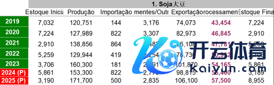USDA对24/25季巴西大豆的产量预估为1.69亿吨,进口15万吨(低于Conab的预估),总供应为1.97亿吨(Conab为1.6785亿吨),压榨+出口所有这个词1.63亿吨(Conab为1.657亿吨)。