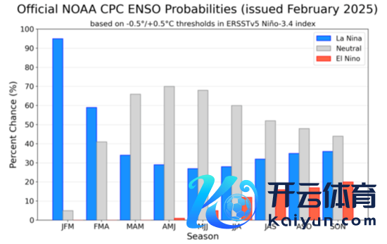 刻下拉尼娜场所仍在赓续,但据NOAA,3月至5月转为中性的可能性为66%,况兼从ONI指数可以看出,刻下特定区域的海表温度较为情切,并不稳健拉尼娜的海洋温度条目,但刻下大气模式稳健拉尼娜条目,因此NOAA将刻下与近期界说为一个少顷的弱拉尼娜场所。若是一定要对弱拉尼娜场所有一个界说,那即是Niño-3.4指数在-0.5℃和-0.9℃之间况兼握续几个月,刻下为-0.8℃,相接第二个月卓绝拉尼娜的阈值。