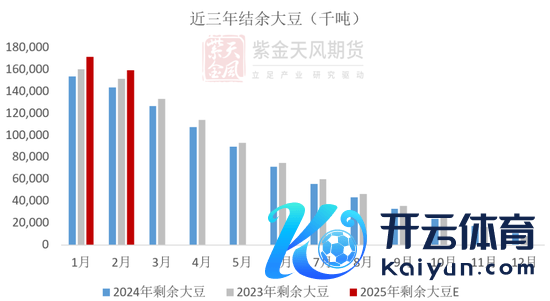 25年2月,Abiove对25年日积年度的大豆供给预估为1.75亿吨傍边。前期巴西大豆收割慢,本年1月出口较少,为107.3万吨,扣除出口、压榨,咱们预估1月表面剩余量同比向上11.5%,2月同比向上10.9%。