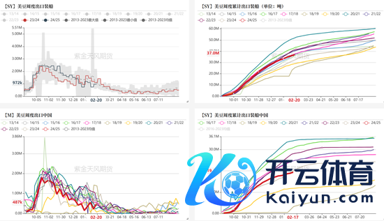 为止2.21当周,24/25年度好意思豆累计出口+未装船4497.2万吨(同比增11%,五年距平低3%),对华累计出口+未装船2101.8万吨(同比低5%,五年距平低16%)。