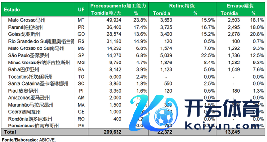 巴西大豆压榨厂散布较为连结,CR5的产能占比76.5%,散布于MT(马州,占比23.8%,4.99万吨/日)、PR(帕拉纳州,占比17.4%,3.64万吨/日)、GO(戈亚斯州,占比13.6%,2.86万吨/日)、RS(南里奥格兰德州,占比14.9%,3.12万吨/日)、MS(南马州,占比6.8%,1.43万吨/日)。