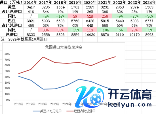 24年进口好意思豆占比较17年砍半。