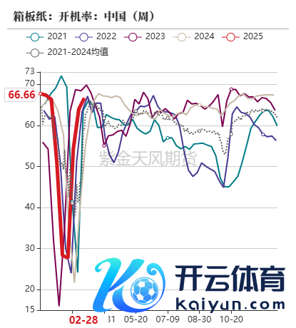 第一季度,玉米淀粉卑劣开机率呈现先上升后下降再上升的走势。截止3月初,F55果葡糖浆开机率46.48%,同比客岁上升12.97个百分点;麦芽糖浆开工率为52.54,同比客岁上升6.75个百分点,瓦楞纸开工65.33%,同比客岁上升11.56个百分点;箱板纸开工66.66%,同比客岁上升11.66个百分点。