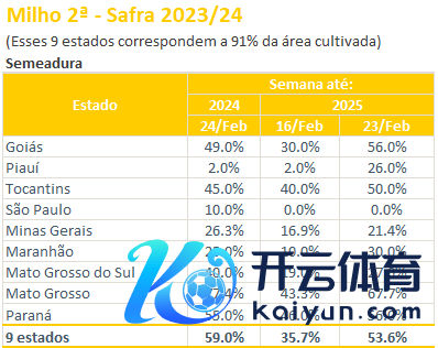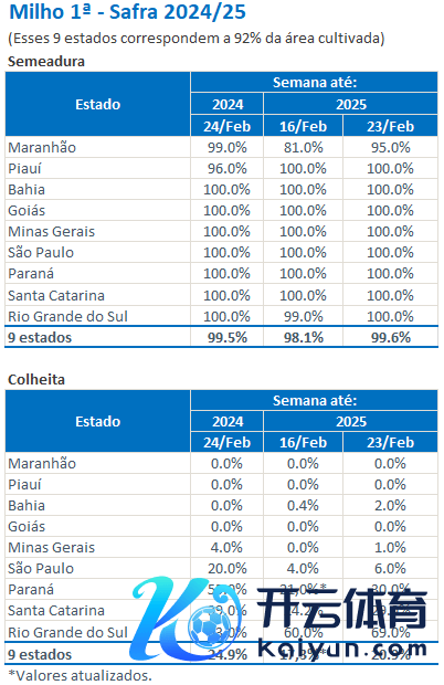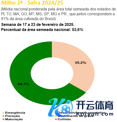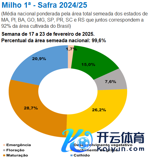 按GO、PI、TO、SP、MG、MA、MS、MT和PR等州播撒总面积加权的世界平均水平来看,新作一茬玉米助长发育阶段占比15.0%,发芽阶段占比1.7%,吐花部分7.6%,灌浆阶段占比26.2%,锻练部分占比28.7%。二茬玉米助长发育阶段占比64.7%,发芽阶段占比35.2%。