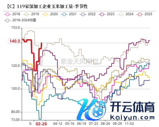 受益于新粮上市以来玉米价钱的握续走低,加工利润改善,深加工企业开机鲠直到年前一直处于较高水平,相应的加工量也处于较高位置;过年时间购销停滞,开机率、破钞量当然着落;年后玉米购销迟缓张开,深加工门前到车量逐步加多,深加工企业开机率、破钞量再次上升。
