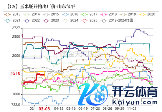 第三阶段(2月26日-于今):玉米价钱颤动上行,最高点2324元/吨。一方面,前期玉米销售程度进一步鼓舞,面前玉米余量如故低于5成,总体供应压力有所缩小;另一方面,3月初华北地区的降雪天气导致深加工门前到车量进一步减少,深加工连接提价促收,华北地区现货价钱颤动飞腾。
