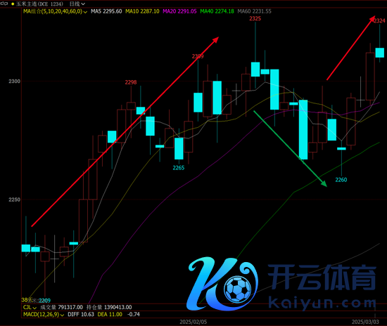 第二阶段(2月13日-2月26日):玉米价钱颤动下行,合约价钱最低2260元/吨。二月份时间,玉米期价颤动下行。原因在于春节事后玉米购销行为逐步张开,玉米阶段性上量较着,供应压力加多压制盘面价钱。