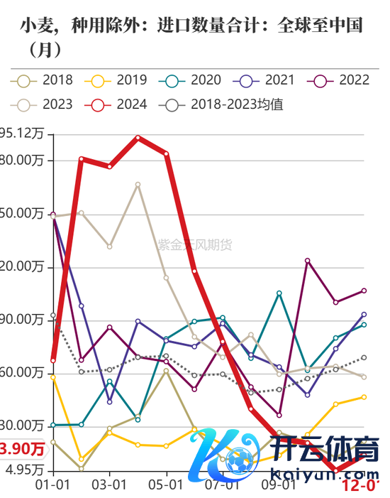 海关数据深切,中国12月小麦入口量仅为14万吨,同比减少约74.5%。2024年1-12月小麦入口总量计为1101万吨,同比减少约8%。