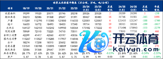 总体来看,24/25年新作玉米字据阛阓调研反应东北华北存在减产预期,世界减产幅度500-1000万吨;同期谷物入口管控以及入口利润萎缩导致入口量揣度权贵下降;国产小麦由于价差偏高,枯竭替代驱动,供给端收缩趋势相对明确。故乐不雅臆想入口量将达到2000万吨傍边,保守臆想入口量将达到1800万吨傍边,故举座供应量区间保管在2.75-2.78亿吨傍边。