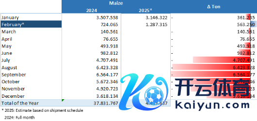 据海关公布的数据深切,2024年12月中国玉米入口量为34万吨,同比减少93%。2024年1-12月玉米入口量合计1376万吨,同比减少约49%。其中,从巴西入口玉米664.6万吨,占比47%:乌克兰入口464万吨,占比33.7%:好意思国入口207.3万吨,占比15%。