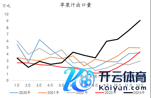 另外,客岁有独特一部分苹果通过果汁式样消化,2024年果汁出口50多万吨,比客岁翻倍增长。如果按照浓缩果汁1:7的比例来看,约略多出近180万吨的量,导致鲜果需求减少。